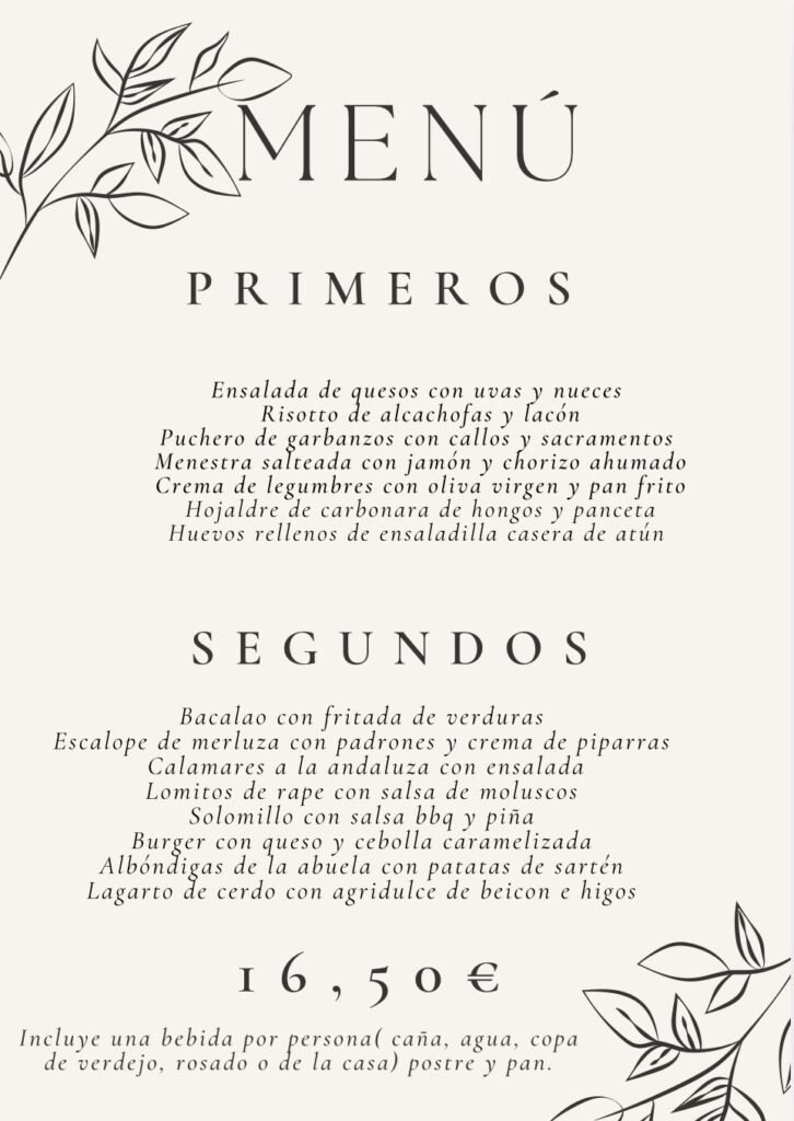 BUENO A base de 91 reseñas Publicado en Paulino VVerificada Excelente comida casera Excelente comida casera, sin complicaciones innecesarias. El mejor sitio de Valladolid. Tranquilo, acogedor, te sirve un personal atento y profesional, para mí idealPublicado en Y DVerificada ¡Excelente! Todo riquísimo y personal encantador. Fui a cenar con unos amigos el sábado 14 de diciembre. Excelente atención y excelente comida, para repetir y recomendar. Pedimos el menú degustación, y nos encantó a todos, uno de los menús era vegetariano y estaba increíble de bueno😋. Todo el personal encantador, Íñigo, su madre y las cameras. Recomendaría este sitio no solo por su buena comida si no también por su excelente personal. Todo un descubrimiento😊Publicado en Jesus SVerificada Buen Restaurante Un restaurante típico con muy buenos desayunos sobre todo las tartas de diferentes sabores..buena relación calidad precio...se centra en la comida y pasa de lo superfluo... habrá que ir a comer...Publicado en Inspire613599Verificada Totalmente recomendable Buena comida y esmerada atención. Quedamos muy satisfechos de la variedad y calidad del menú del día (18 €) y del trato recibido.Publicado en Ana DVerificada Un menú del día excelente y a muy buen precio Relación calidad precio excelente y trato inmejorable. Todo muy rico. Alubias pintas con sus sacramentos con mucho sabor. La hamburguesa rica. Los postres caserosPublicado en Javier RVerificada Un muy buen menú Un restaurante con un menú super amplio donde elegir platos y todos ellos muy caseros y ricos, con un gran precio . Para repetir